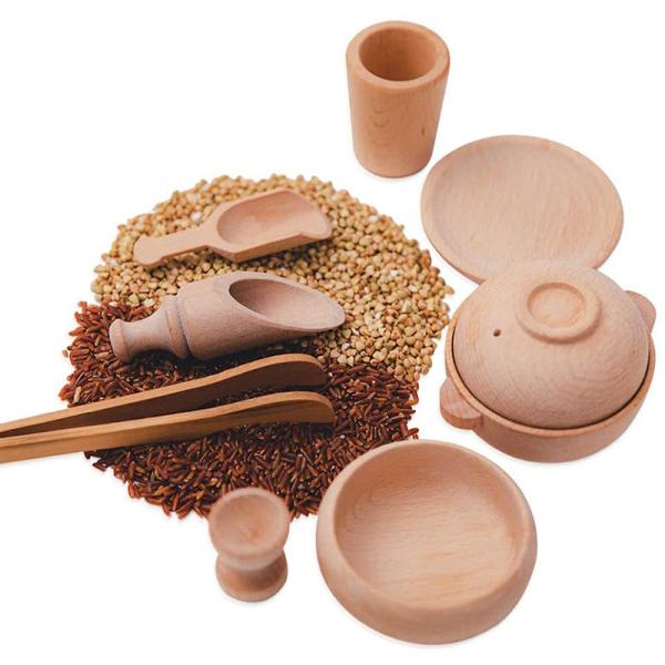 Wooden Montessori Baby Kitchen Play House Toys Motor Skills Learning Education Toys Wooden Dish Scoops Tongs Cup Set :