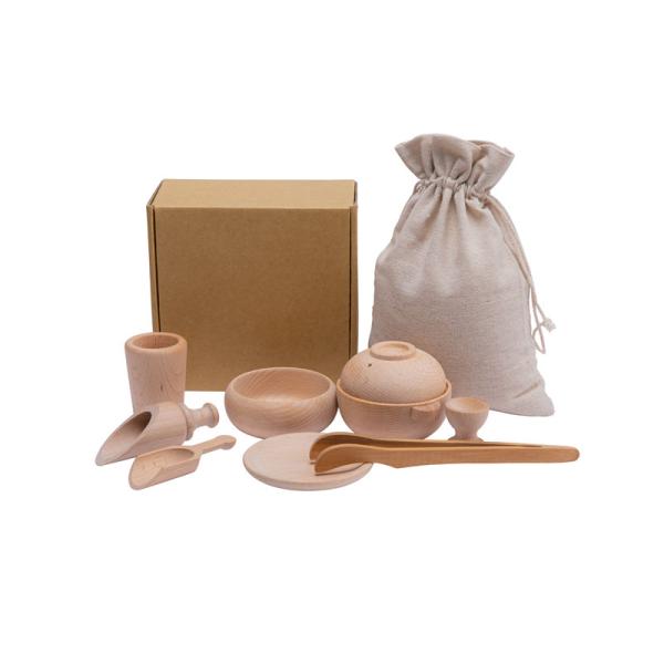 Unisex Montessori Beech Wooden Miniature Kitchen Set Images |