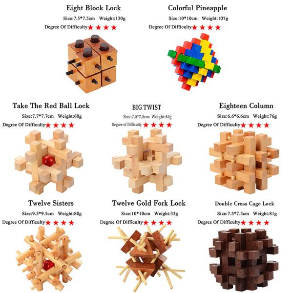Wooden Kong Ming Puzzles Set Luban Lock IQ Puzzle Game for Adult Kids Time Killer Brain Teaser 3 Levels Degree Game Toy Images |